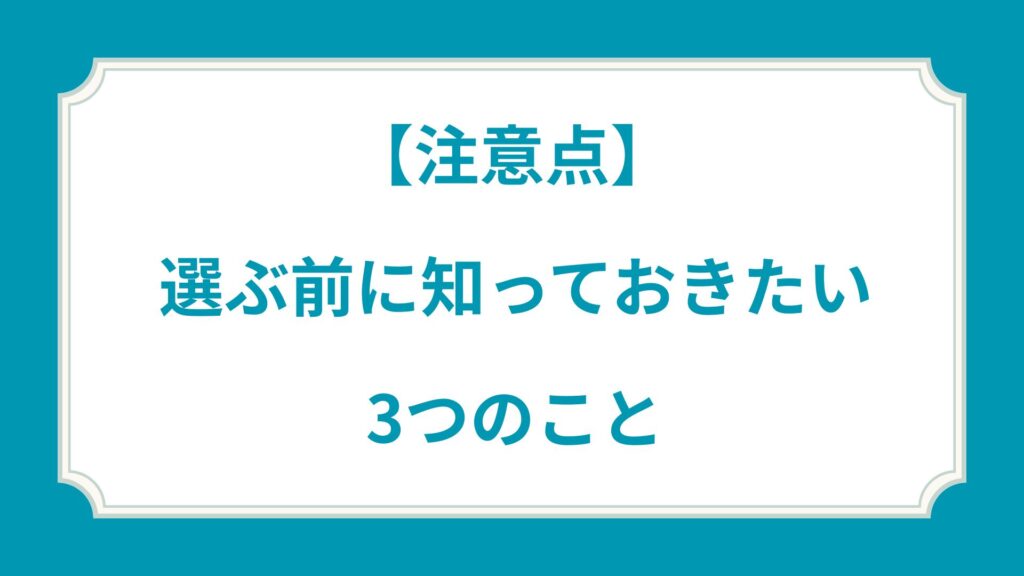 後悔のない買い物にするためにも、次の3つの注意点をぜひチェックしてください。