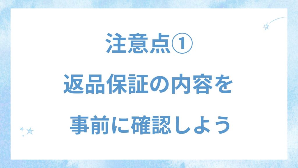 「〇日間返金保証あり」と記載されていても、返送時の送料負担や梱包材の保管義務など、細かな条件がある場合があります。