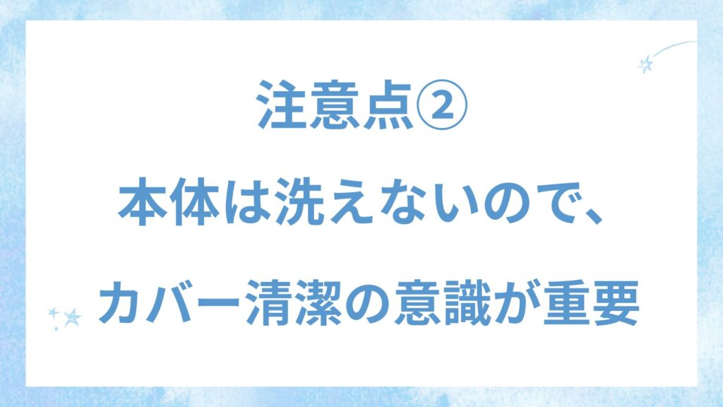 注意点② 本体は洗えないので、カバー清潔の意識が重要