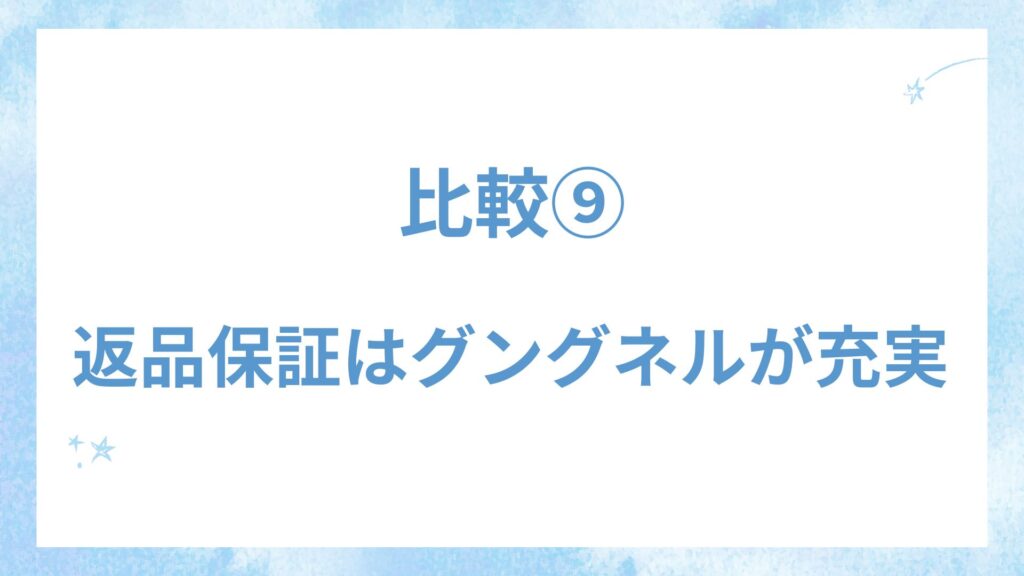 一方でヨーネルコN3010は30日間と短めなので、比較的早い段階で判断が必要になります。慎重に選びたい方には、返品期間が長いグングネルの方が安心です。
