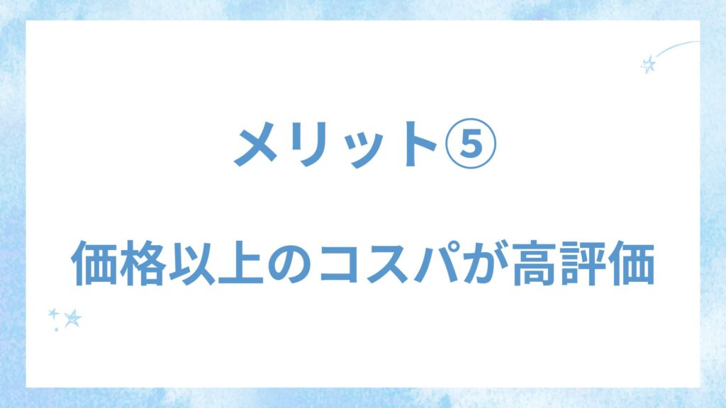 メリット⑤:価格以上のコスパが高評価