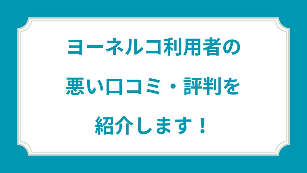 ヨーネルコ利用者の悪い口コミ・評判を紹介します!