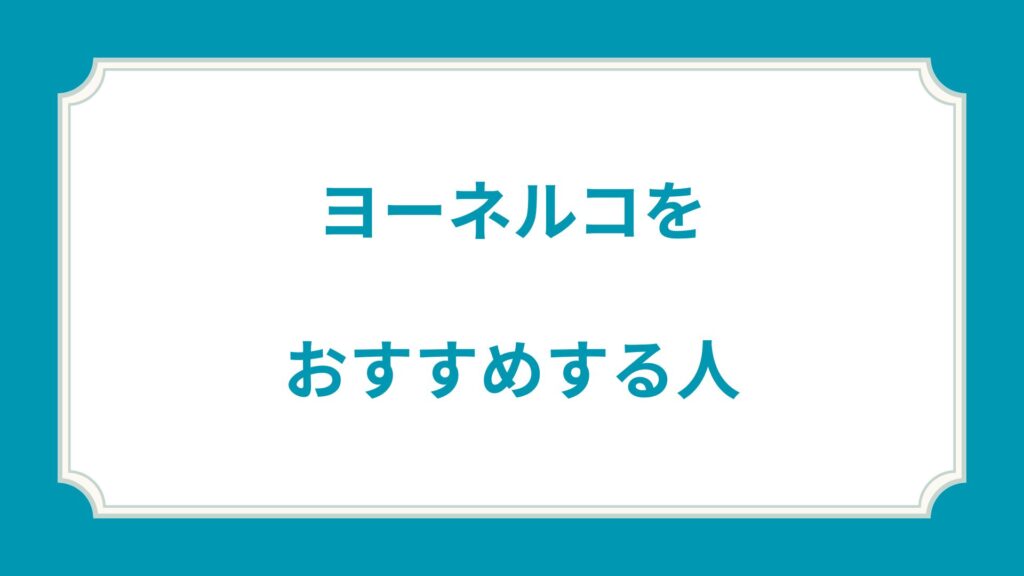 ヨーネルコをおすすめする人