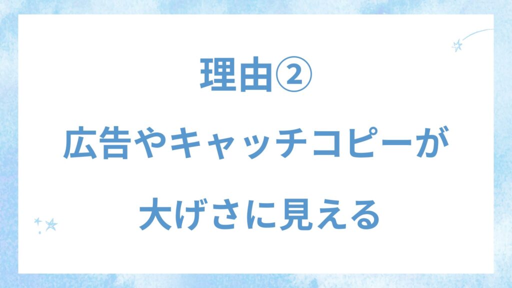 こうしたキャッチコピーは商品の特長をわかりやすく伝えるためのものですが、人によっては「本当にそこまで効果があるの?」と疑ってしまう原因になります。