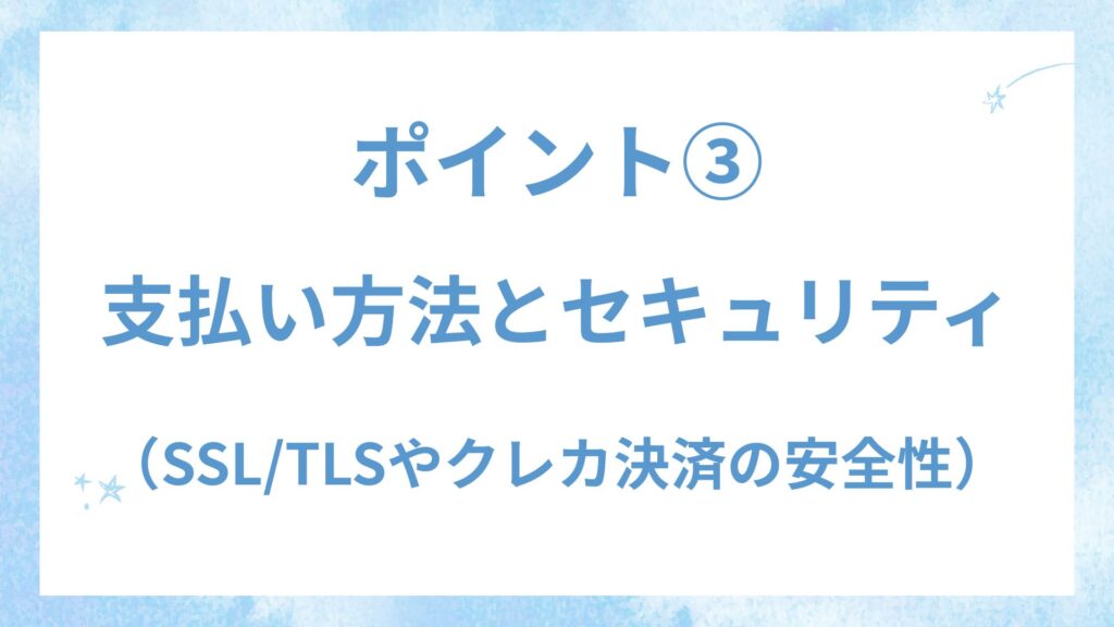 ポイント③:支払い方法とセキュリティ(SSL/TLSやクレカ決済の安全性)