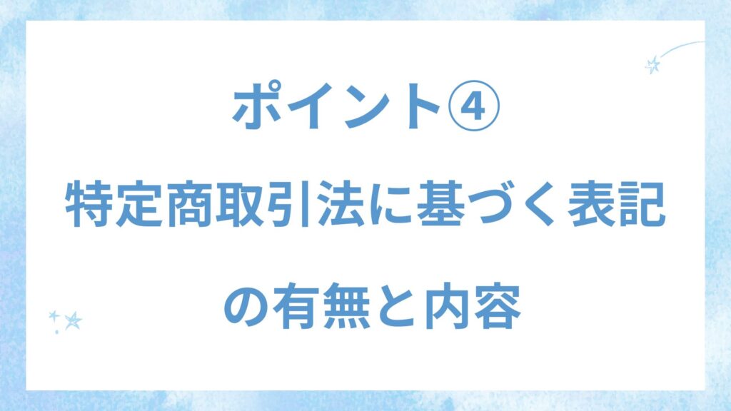 ポイント④:特定商取引法に基づく表記の有無と内容