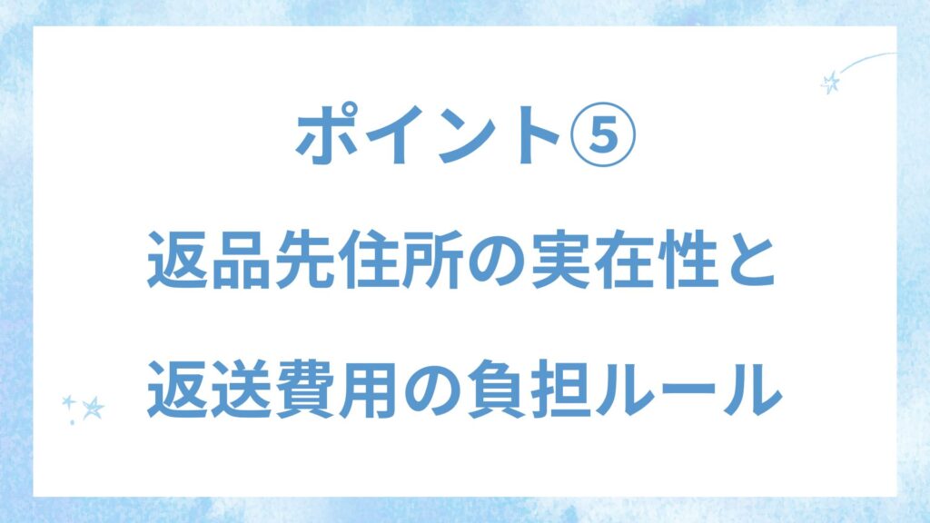 ポイント⑤:返品先住所の実在性と返送費用の負担ルール